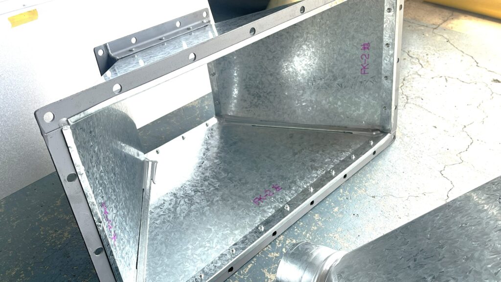 こんにちは、てつまどです。 さて、本日は工場から、私たちが日々ダクトと向き合う「いつもの風景」をお届けします✨ 今回製作したのは、「角丸ホッパーダクト」です。 一方は大きな角形、もう一方は小さ …